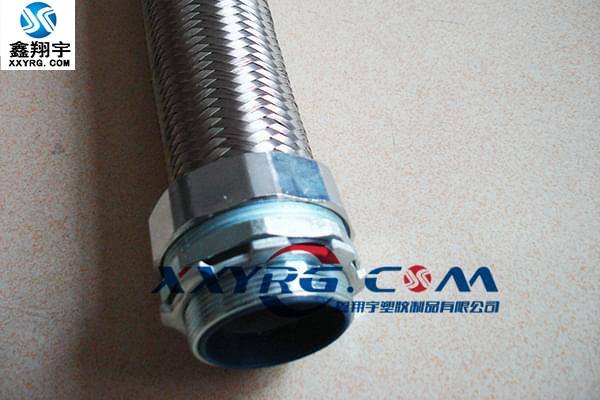 外層不銹鋼絲編織(鍍鉻黃銅編織),防爆、抗磨損及抗電磁干擾屏蔽作用,增強了拉力強度和防爆功能,耐腐蝕,廣泛使用于冶金化工等行業.不銹鋼絲選用優質SUS304/SUS301材質,其中SUS304[0Cr18Ni9Ti]選用0.18毫米直徑細絲,絲質光滑柔軟,色澤潔白如銀,鋼絲永不生銹,接口永不炸頭XY-0609不銹鋼防爆軟管適用范圍:工業機械設備電線電纜保護;特別適用于危險潮濕環境;
